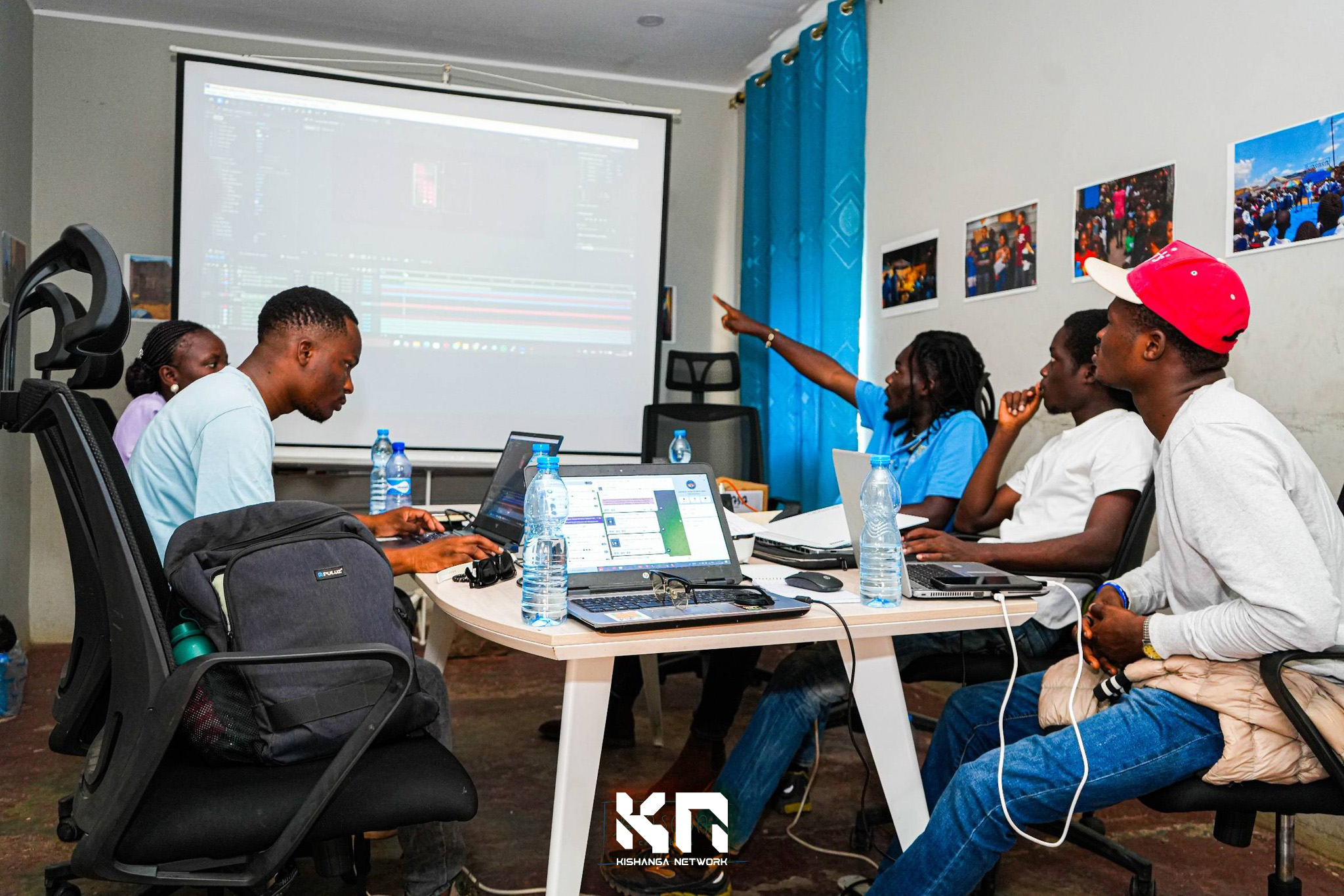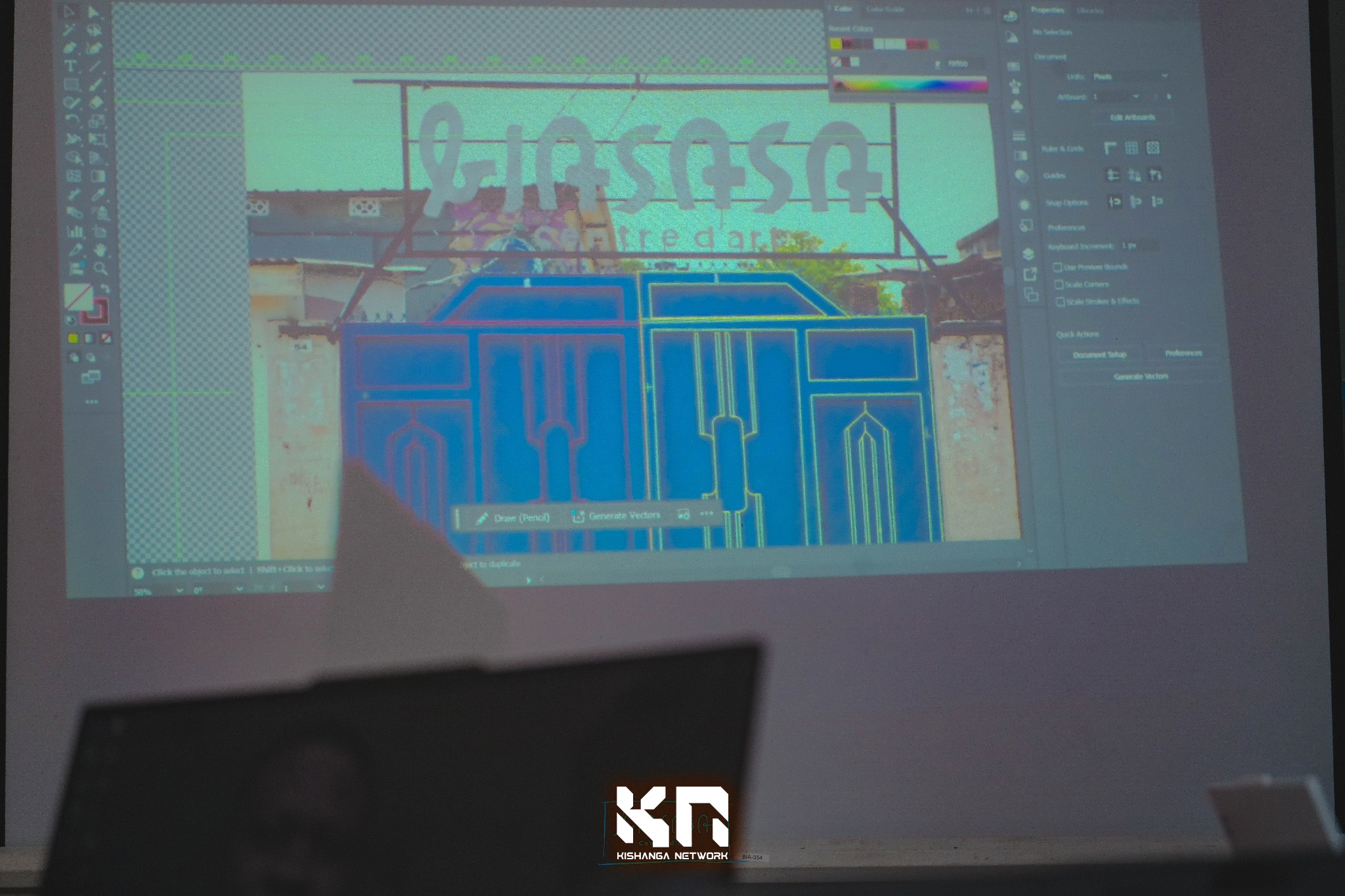 L’atelier s’est conclu par une projection mapping publique, où la façade du bâtiment de Biasasa Centre d’Art a été transformée en une œuvre audiovisuelle immersive. Cette restitution a offert au public une expérience marquante, révélant le potentiel du numérique comme médium artistique.
